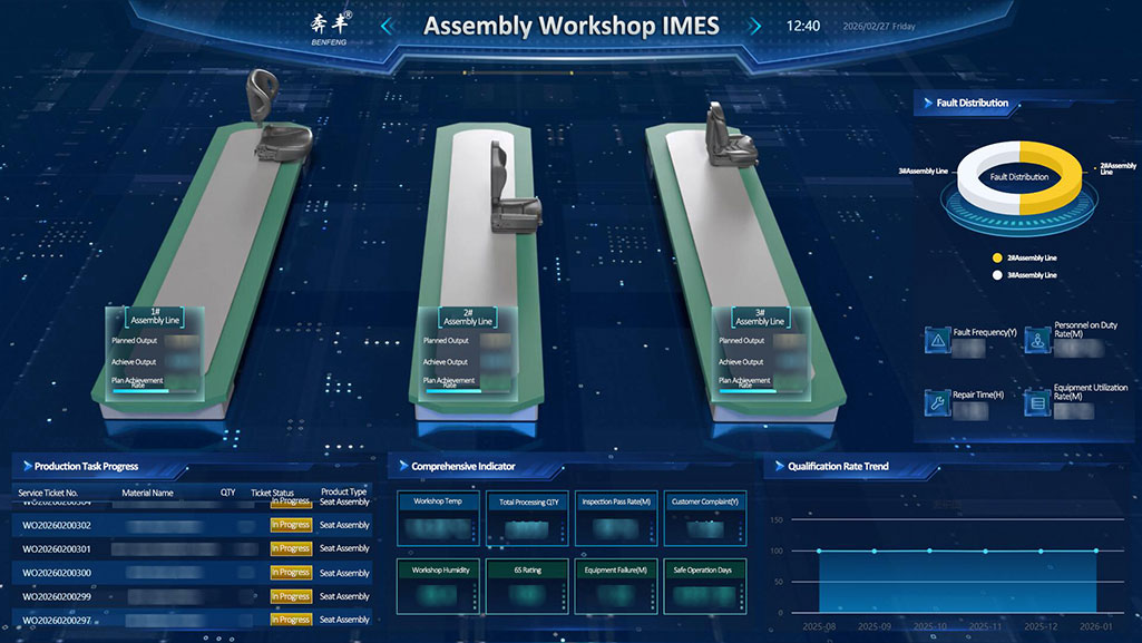 In éiceachóras digiteach Benfeng Seats IMES, is é an cheardlann tionóil, lena bhainistíocht chliste lánphróisis, an talamh tástála deiridh do cháilíocht na suíochán críochnaithe.